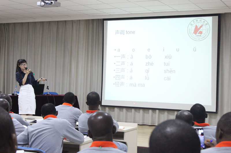 9月9日晚,集團(tuán)公司一樓多功能媒體教室傳來一陣陣洪亮的漢語拼音朗讀聲,聲母、韻母一個(gè)都不少?!癰、p、m、f……”、“zhi、chi、shi、ang、eng……”這是項(xiàng)目培訓(xùn)組為尼日利亞學(xué)員組織的“學(xué)說中國(guó)話、認(rèn)識(shí)中國(guó)字”培訓(xùn)課程開課了!今天上第一課“我叫大衛(wèi)”。為了把中文課培訓(xùn)組織好,培訓(xùn)組可沒少下功夫。選教材、定課時(shí)、請(qǐng)老師,每一項(xiàng)都是精心籌劃,最后選定了遼寧科技大學(xué)專職教授漢語的老師為學(xué)員們授課。老師教的認(rèn)真,學(xué)員學(xué)的認(rèn)真。一節(jié)課下來,學(xué)員們學(xué)漢語的熱情被全面激發(fā)!據(jù)項(xiàng)目培訓(xùn)組負(fù)責(zé)人介紹,前兩月共安排12節(jié)課,課程設(shè)計(jì)也借鑒了漢語教學(xué)的基礎(chǔ)課程安排,從相互介紹、確認(rèn),時(shí)間、方位表述,日常需要等方面循序漸進(jìn),希望能夠達(dá)到一個(gè)最佳學(xué)習(xí)效果。學(xué)習(xí)中間會(huì)根據(jù)學(xué)員掌握情況進(jìn)行調(diào)整,后期再結(jié)合專業(yè)課培訓(xùn)情況進(jìn)行課程設(shè)計(jì)。